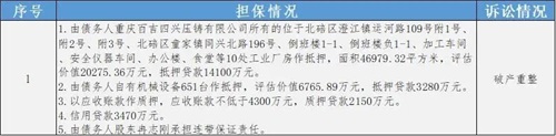 中国长城资产管理股份有限公司重庆市分公司拟转让其享有的重庆百吉四兴压铸有限公司债权资产,债权总额23,186.75万元,其中:债权本金23,000.00万元,债权利息186.75万元(债权金额计算至2022年11月9日,实际利息、违约金等以转让日计算的为准)具体债权金额为: