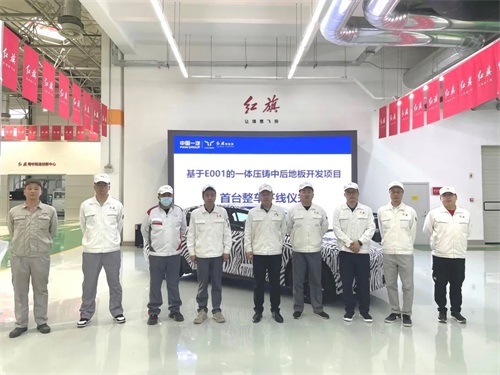 近日,红旗基于E001的一体压铸中后地板开发项目首台整车顺利下线。项目白车身中后地板采用一体压铸技术,首次实现了大型一体压铸零件车身试制。试制团队聚力攻坚、抢抓节点,最终实现提前15天完成试制任务。