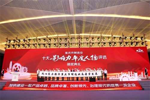 颁奖典礼现场,重庆市政府副市长江敦涛为10位获奖的企业家颁发荣誉证书。