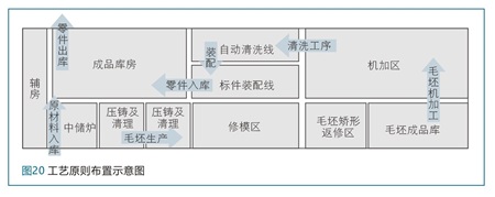 按工艺专业化的原则将同一类型的设备聚集到一块,以便完成工艺过程中同种类型的工艺任务。其布局示意图如图20所示。