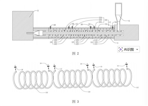 目前,镁合金大多通过半固态镁合金注射成型,但是镁合金的半固态区域通常很窄,对温度要求苛刻,对于射料筒靠近料斗的后部段、中部段和靠近喷嘴的前部段有不同的温度需求。传统射料筒的外壁是仅通过电阻加热套方式进行分段加热,该方式由于内壁与外壁温差过大,导致温度控制并不准确,进而影响半固态浆料的流动性、混合均匀性,最终制约了半固态镁合金注射成型制品的质量。