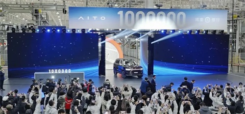 2026年1月13日,重庆两江新区赛力斯超级工厂内,随着一辆极光紫问界M9缓缓驶下生产线,AITO问界正式达成第100万辆整车下线的历史性里程碑。赛力斯集团董事长张兴海、华为常务董事、终端BG CEO、智能汽车解决方案BU CEO余承东出席仪式,共同见证了第100万辆问界车缓缓驶下生产线。