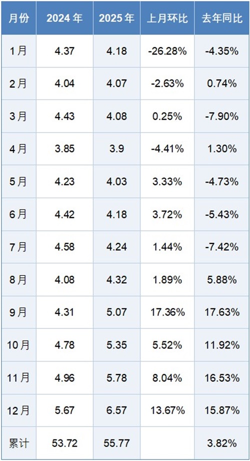 从月度趋势看,产量呈现鲜明的“前低后高”增长拐点。2025年前7月,受行业季节性调整影响,镁产量增速低迷甚至出现负增长;进入9月后,产能释放节奏加快,呈现强势爆发态势,其中12月单月产量达6.57万吨,环比飙升13.67%、同比大涨15.87%,年末冲刺势头显著。