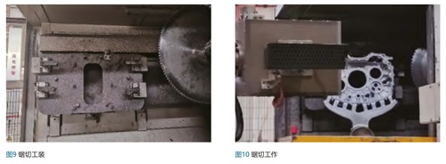 夹具设计:采用三点定位工装,通过气动压板固定铸件,夹紧力8kN,锯切路径与内浇口轴线夹角控制在5-8°,如图10所示。