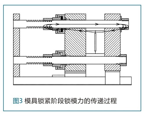 由上述分析可知,在锁模阶段,哥林柱所受的拉力与锁模力相等;在压射阶段,哥林柱所受的拉力等于锁模力和部分胀型力的和。