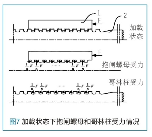 假设第一颗环形牙上抱闸螺母和哥林柱的长度差值为△s,优化后的结构如图11所示。