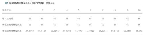 抱闸螺母环形牙间距尺寸对比如表1所示。