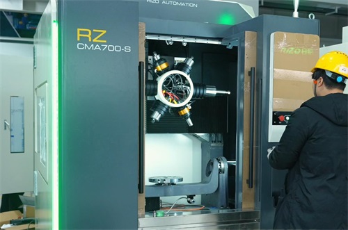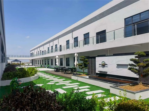步入生产基地,四幢线条流畅的现代化建筑映入眼帘,楼体醒目的“Rizo”标识极具辨识度。园区绿意盎然,将现代工业美学与高效管理融合,尽显绿色生态与科技共生的理念。生产车间内,工具定点摆放、通道标识清晰,设备状态一目了然,规整的布局彰显出成熟的数字化、标准化管理水平。