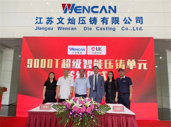 继今年5月,力劲集团、文灿集团合作签约7台套意德拉超大型智能压铸单元后,8月21日,力劲集团、文灿集团9000T超级智能压铸单元签约仪式在江苏文灿压铸有限公司举行。
