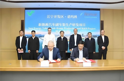 值得一提的是,南京江宁是诺玛科集团布局亚洲市场的重要起点。自2007年在江宁设立亚洲首家工厂以来,企业持续加大投资力度,不断推进技术改造与新产线建设,与南京江宁汽车产业生态深度融合。此次签约的新能源汽车副车架研发生产项目,计划在2025 - 2027年三年内新增投资1390万美元,重点聚焦副车架生产及自动化技术研发。项目投产后,预计未来三年累计产值可达24.6亿元人民币。
