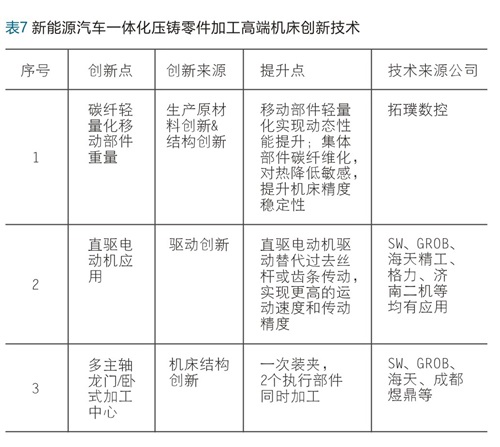 综上所述,新能源汽车一体化压铸零件加工高端机床的创新技术见表7。