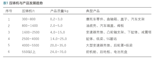 随着免热处理材料的开发,压铸零部件不断向高集成化发展,零部件尺寸和质量也在不断增加,同时压铸机的吨位也随之增加。通过调研,从表1压铸机与产品发展趋势来看,压铸机的吨位越大,产品质量越大。近年来,大型一体化压铸零件在汽车领域的应用越来越多,且集中在4000t以上,产品越来越大,质量也随之增加,人工搬运产品变得效率低下,且劳动强度越来越大,产品的渣包料饼去除,产品检测过程中搬运效率提升必须走自动化路线。本文结合自身压铸岛周边设计与实践经验,从产品工艺流程,压铸岛周边布局,熔化炉自动化投料,喷涂工装设计原理,快速水冷站设计,渣包去除控制要点及工装设计,等离子去料饼方案,自动化去毛刺,在线X-Ray探伤检测,自动化装箱和HSE等方面做了逐一说明。