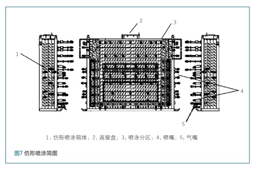 为了缩短喷涂时间,大型一体压铸喷涂必须采用仿形喷涂。如图7所示,仿形喷涂采用多回路方式,对模具上需要喷涂的位置进行分区控制,这样有利于根据产品的实际需求,设定不同喷涂量及喷涂时间,在保证脱模效果的同时,还能进一步减少喷涂时间。