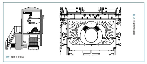 图12为切割浇道的分界线。由于等离子切割在切割过程中,本体必须连续,因此,模具设计时,需要把浇道前端链接在一起,这样既保证了不断弧,又不切伤产品。