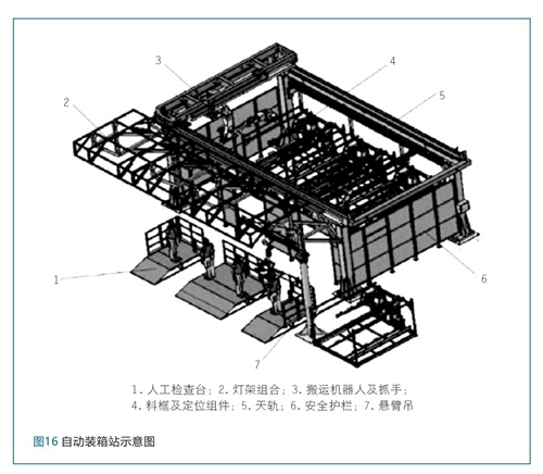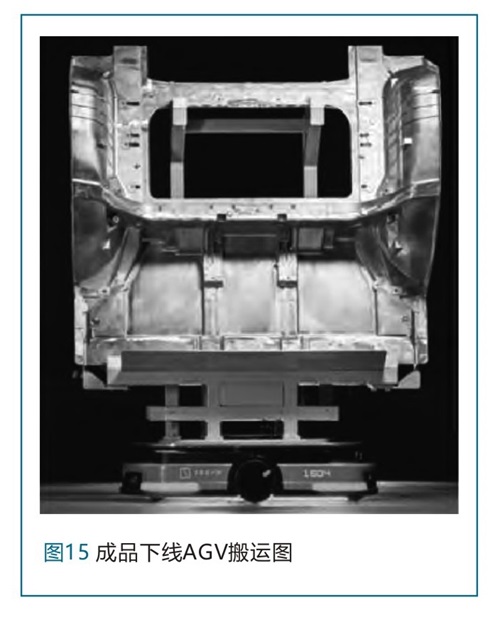 图15为产品在AGV上的示意图。通过机器人将产品放在AGV小车上,小车识别到有产品后,搬运产品到人工检查工位(图16);人工对产品外观进行100%检查,检查后输入合格和不合格信息,信息传递到自动化装箱站。机器人根据产品信息将产品放入合格品或不合格品的料架,实现了自动装箱。当装箱站的料架装满产品后,自动化装箱站呼叫新的AGV进入自动化装箱站,更换新的料架。整个过程自动化完成,减少人工搬运,提高效率。