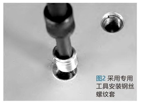 钢丝螺套安装中出现不顺畅、受阻现象可能的原因主要有:一是钢丝螺套轴线与安装孔轴线不平行;二是基孔有铝屑等异物阻碍了钢丝螺套的安装;三是安装孔口部未倒角,导致钢丝螺套不易导入螺纹孔;四是安装基孔过小引起安装不易,需要按相应标准控制基孔公差。一旦出现钢丝螺套不易安装的情况,应立即停止,并用工具取出螺套,按上述原因一一查找并纠正或更换螺套。