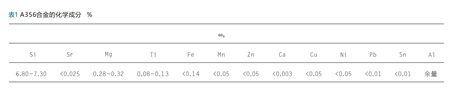 试验材料为A356铝合金,其化学成分见表1,合金在反射式熔化炉中进行熔炼,并在熔炼炉内进行精炼,精炼温度为720~740℃。选用保护气体为高纯氮气。