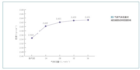 采用透气砖除气,随着气体流量增加,试样密度不断增大,铝液氢含量逐渐降低,减压凝固试样密度增大,见图5,每个试验条件下测量300组数据求平均值。透气砖在中转包的底部,使整个中转包内的铝液全部被净化处理。但是,透气砖除气反应更加剧烈,铝液表面氧化膜不断被破坏,增加了铝液的氧化。